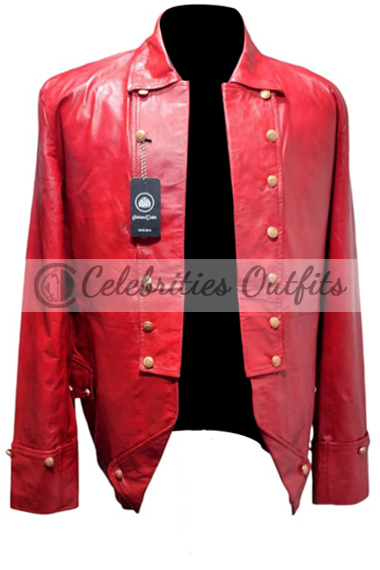 Luke Evans Beauty And The Beast Gaston Red Leather Military Trench Coat