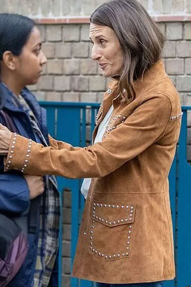 Helene Killing Eve Camille Cottin Brown Suede-Leather Jacket