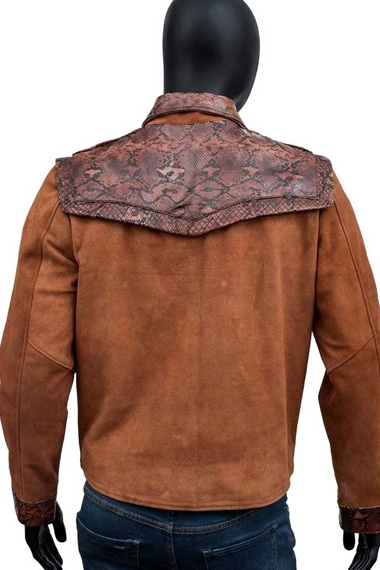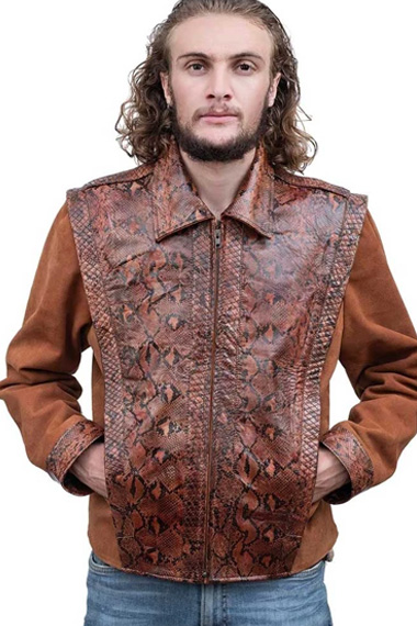 Mick Crocodile Dundee Paul Hogan Snake Skin Print Brown Leather Jacket