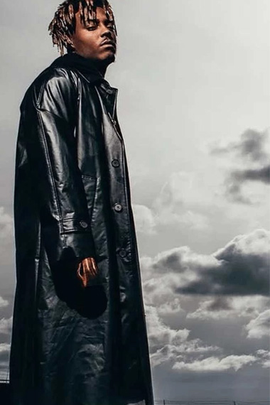 Mens Juice WRLD Doom Casual Black Leather Long Trench Coat