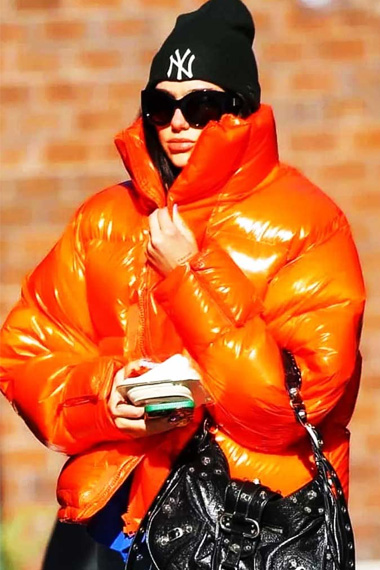 Dua Lipa Street Style Womens Casual Bomber Orange Parachute Quilted Puffer Jacket