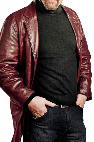 Hugh Grant Fletcher The Gentlemen Brown Leather Trench Blazer