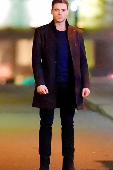 Richard Madden Eternals Ikaris Black Wool Mid-Length Coat