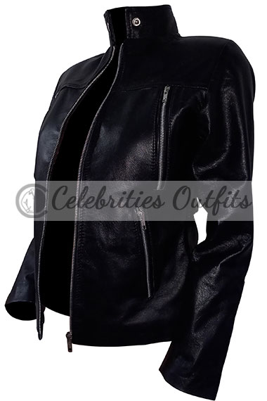 Mia Smoak Blackstar Arrow TV Show Katherine McNamara Black Leather Jacket
