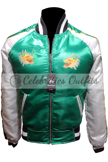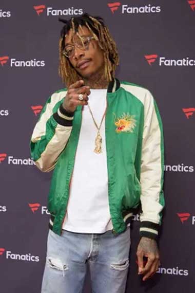 Wiz Khalifa Fanatics Mens Casual Bomber Green Satin Varsity Jacket