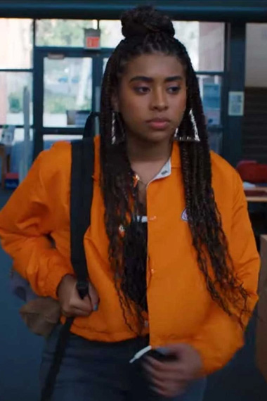 Aisha Garcia Saved By The Bell Alycia Pascual Pena Bomber Orange Cotton Jacket