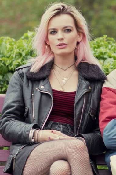 Sex Education TV Series Emma Mackey Maeve Wiley Biker Black Leather Jacket