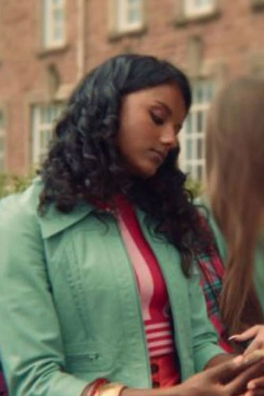 Olivia Hanan Simone Ashley Sex Education TV Series Turquoise Cropped Leather Jacket