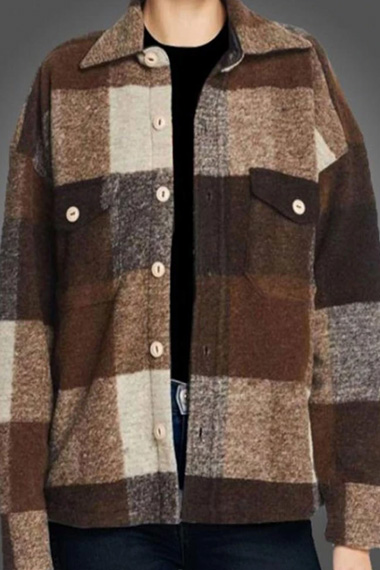 Sloane Holidate Emma Roberts Brown Plaid Checked Wool Jacket