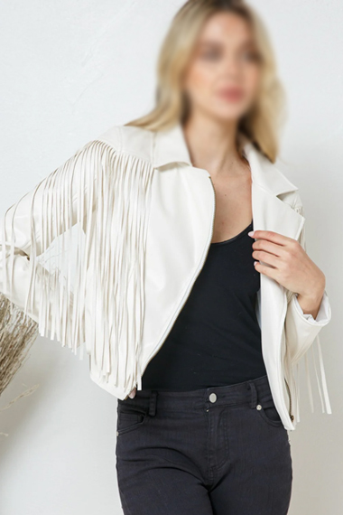All those girls that think black is the color need to try this. Away for all those striking neon and the dull black, this one's surely going to make you dazzle. Perfect for a day at work or a night out, maybe. Well there are a lot of colors that everyone cannot pull up but this is surely everyone's color. Not only is the color, the cut going to help you score it. Once you will have it on your body it will bring an attractive simple style and help you enhancing your curves and bring out the inner goddess in you, this jacket is designed to rock. Protecting you from the winter chills where as helping you to look good at the same time, surely that is every girl's dream and it just cannot get better; Ferris Bueller's Day off Sloane Fringe White Jacket is a celebrity jacket. Oh yes, you can pull of that look too now girl, you have got the materials for that already .The classy thing has a level to bring what you always wanted and For a much more than one day celebrity experience, grab your jacket now.