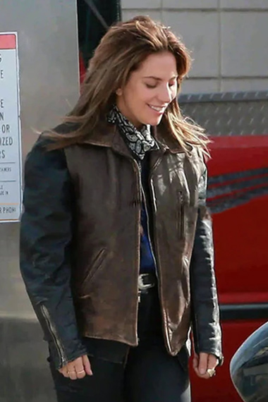 Ally Lady Gaga A Star is Born Biker Brown Bomber Leather Vest
