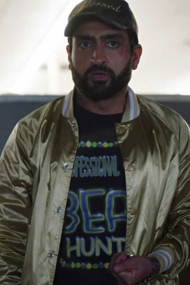 Jibran The Lovebirds Kumail Nanjiani Golden Satin Bomber Varsity Jacket