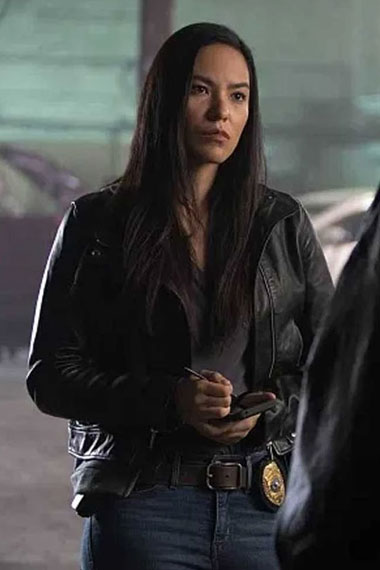 Jessica Matten Sam Woodburn Tribal Biker Black Leather Jacket