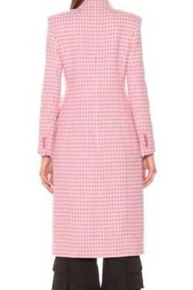 Hilary Duff Younger TV Series Kelsey Peters Checked Pink Plaid Wool Trench Coat